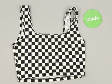 Top crop w czarno-białą kratę (wzór szachownicy) - Krój: krótki top na ramiączkach, lekko dopasowany - Dekolt: zaokrąglony z przodu i z tyłu - Ramiączka: szerokie; na jednym ramiączku dekoracyjny ...Stan: