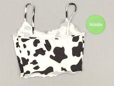 Bluzka bez rękawów SHEIN - Model: top halter z wiązaniem na szyi - Kolor/pattern: kremowe tło w czarne, nieregularne plamki (print w stylu animal/brush) - Krój: lekko rozszerzany ku dołowi, odkryt...
