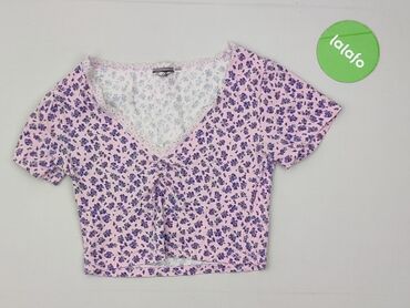 Różowy top Sinsay, rozmiar S. - Krótki fason (crop top) z krótkim rękawem - Prążkowana, elastyczna dzianina - Okrągły dekolt - Długie troczki do wiązania przy dolnej krawędzi (możliwość dopasowani...