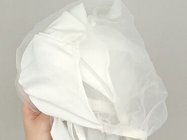 - Rękawy: długie, bufiaste z lekkiej, transparentnej siateczki/organzy; zakończone mankietem