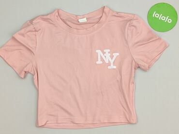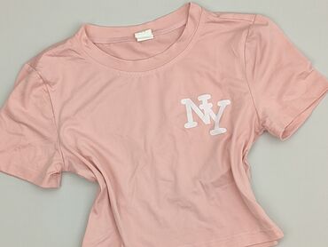 OkrągłyRóżowy damski crop top z krótkim rękawem i nadrukiem „NY” na piersi.