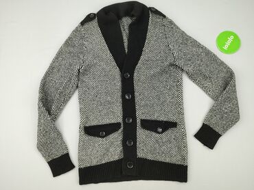 Damski kardigan H&M - Model: klasyczny, zapinany na guziki - Kolor: ciemnoszary/melanż - Rozmiar z metki: S (EU S, US P) - Fason: dłuższy, z dekoltem V - Rękawy: długie, ściągacze przy mankietach ...