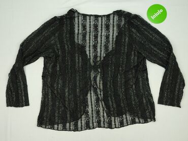 Czarny kardigan damski bez zapięcia - Klasyczny, długi fason do bioder - Długie rękawy z szerokimi, prążkowanymi mankietami - Przód i boki z ażurową/siatkową dzianiną, plecy gładkie - Szeroka, prą...