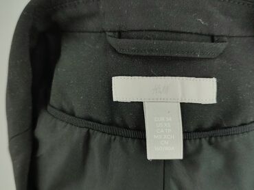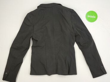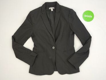 Damska marynarka H&M – krótki żakiet, czarny - Model: krótki, taliowany żakiet z klapami - Zapięcie: jeden guzik z przodu - Rękawy: długie, mankiety z trzema dekoracyjnymi guzikami - Kieszenie: dw...