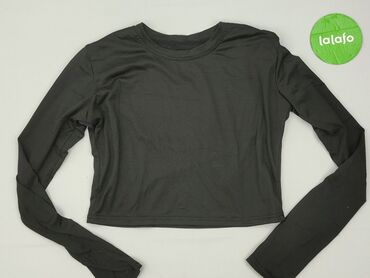 Czarny top z długim rękawem, krótki (crop top). - Fason: dopasowany, długość do talii - Dekolt: okrągły - Rękawy: długie - Materiał: cienka, elastyczna dzianina (prawdopodobnie bawełna z domieszką ...Stan: