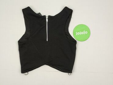 Czarny top damski XS/XXS – krótki, wiązany - Model: krótki top typu crop, bez rękawów, z zabudowanymi ramionami - Kolor: czarny - Zapięcie/wykończenie: dekoracyjne wiązanie z przodu w stylu gorset...