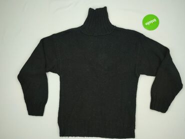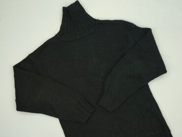 Czarny damski sweter z golfem - Fason: dopasowany sweter z wysokim, szerokim golfem - Długość: do bioder - Rękawy: długie, zakończone szerokim ściągaczem - Dół: elastyczny ściągacz poprawiający do...