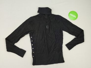 Czarny golf damski z długim rękawem - Krój: klasyczny golf, dopasowany, z wysoką, elastyczną stójką - Rękawy: długie, zakończone ściągaczem - Dół swetra: szeroki, prążkowany ściągacz dla lepszego ...