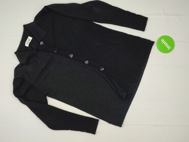 Czarny, prążkowany sweterek/kardigan damski zapinany na guziki. - Fason: dopasowany, lekko elastyczny - Dekolt: w szpic (V-neck) - Zapięcie: rząd małych czarnych guzików z przodu - Rękawy: długie;...Stan: