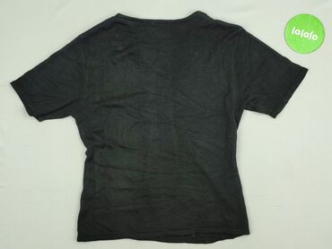 Czarny, lekki kardigan damski z krótkim rękawem - Fason: zapinany z przodu na rząd białych guzików (widocznych od dołu ku środkowi), głębokie V-neck. - Kolor: czarny; wewnątrz przodu wszyta dziani...