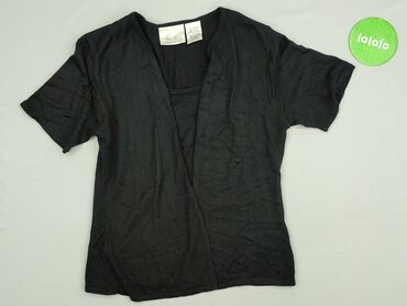 H&M – damski czarny kardigan - Fason: lekko taliowany, długość do bioder - Zapięcie: dwa guziki z przodu - Dekolt: głęboki V z ażurową koronkową lamówką - Detale: ażurowe wstawki w pasie i na dole...
