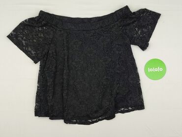 Bluzka damska Atmosphere - Kolor: czarny - Krój: hiszpanka/off-shoulder z krótkimi, falistymi rękawkami - Ozdoby: haftowane aplikacje kwiatowe w intensywnym różowym kolorze na obu rękawach - Tył: ...