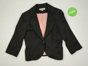 Damska marynarka w kolorze czarnym (rozmiar z metki: 36). - Krój: taliowany, jednorzędowy, z dwoma guzikami - Kołnierz: klasyczne, szerokie klapy - Rękawy: długie - Kieszenie: dwie przednie z patk...