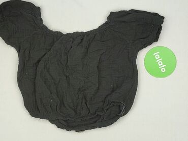 Czarny, ażurowy krótki top damski z krótkim rękawem. - Fason: krótki top typu crop, z szerokim dekoltem (można nosić na ramionach lub hiszpańsko). - Materiał: 100% bawełna (etykieta “100% COTONE”)...