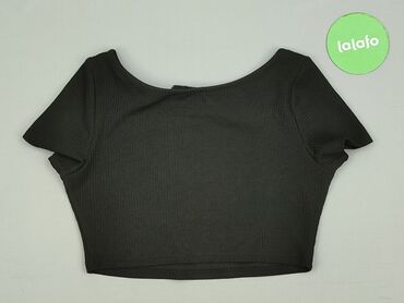 Czarny top T-shirt ribbed - Krój: krótki, lekko crop, dopasowany - Rękaw: krótki - Dekolt: okrągły - Materiał: elastyczna prążkowana dzianina (rib), miękka i rozciągliwa - Kolor: głęboka czerń - R...