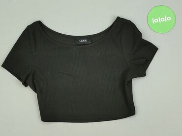 OkrągłyCzarny prążkowany crop top marki CIDER z krótkim rękawem. Dekolt ma kształt łódki. Wykonany z elastycznego materiału, który dopasowuje się do sylwetki, zapewniając komfort noszenia. Idealny do letnich stylizacji lub jako element warstwowy.