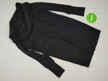 Długi kardigan/swetrowa narzutka damska - Kolor: melanż czarno‑szary (mieszanka przędzy w kilku odcieniach) - Krój: prosty, wydłużony, bez zapięcia; długie rękawy - Długość: poniżej kolan (maxi) -...