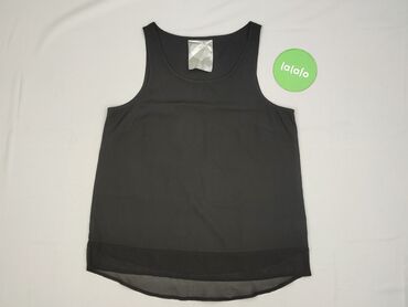 Czarny damski top bez rękawów z szyfonu - Fason: luźny, lekko oversize - Dekolt: okrągły - Dół: warstwowy, z lekko wydłużonymi bokami i zaokrąglonym brzegiem - Tył: efektowna zakładka/rozcięcie z ...Stan: