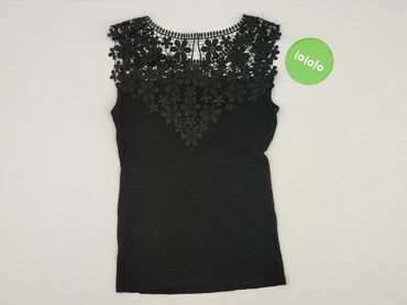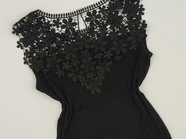 Czarna bluzka bez rękawów z koronkową warstwą - Kolor: czarny - Fason: luźny, lekko rozkloszowany, bez rękawów - Materiał: wierzchnia warstwa z gęstej koronki o kwiatowym wzorze; spodnia warstwa z...