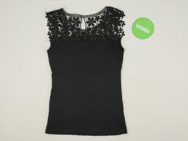 Czarna bluzka bez rękawów z ażurową koronką - Kolor: głęboka czerń - Krój: dopasowany, bez rękawów; delikatne, krótkie „skrzydełka” z koronki - Dekolt: okrągły, wykończony szeroką ażurową wstawką ...