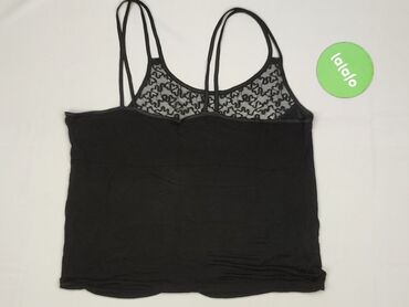 Czarna koronkowa koszulka damska typu tank top. - Fason: bez rękawów, z wycięciem typu bokserka na plecach (racerback). - Materiał: lekka, półprzezroczysta koronka z kwiatowym wzorem; elastyczna s...