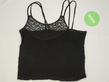 Czarny koronkowy top damski - Krój: bez rękawów, na ramiączkach, krótki/crop - Materiał: ażurowa koronka szydełkowa, kwiatowe wzory; górna część mocno prześwitująca, dół z gęstszym splotem - Dekol...