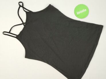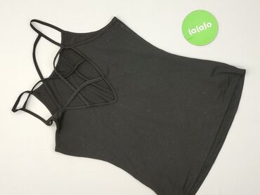 Czarna damska koszulka bez rękawów / top - Fason: klasyczny tank top z szerokimi ramiączkami, półokrągły dekolt, lekko zaokrąglony dół - Tył: głębsze wycięcie - Materiał: 95% wiskoza, 5% elastan –...Stan: