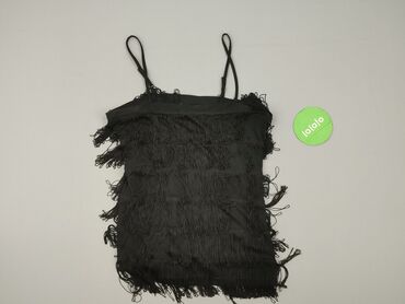 Czarny top damski na ramiączkach łańcuszkowych - Fason: luźny, prosty krój z dekoltem w kształcie litery V z przodu; tył gładki - Ramiączka: dekoracyjne, złote łańcuszki - Materiał: 100% poliester...