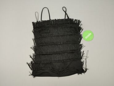 Czarna damska bluzka na ramiączkach - Krój: luźna, lekko wydłużona, z kaskadowymi warstwami materiału (3 falbany z przodu i z tyłu) nadającymi lekkości. - Materiał: zwiewna, półprzezroczysta tkani...