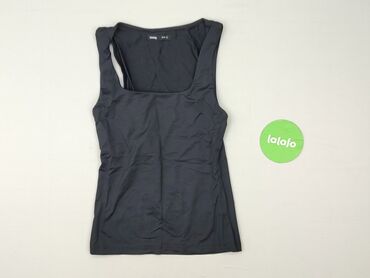 Czarny top damski Sinsay - Krój: dopasowany, bez rękawów - Dekolt: kwadratowy - Rozmiar: S (z metki) - Materiał: 94% poliamid, 6% elastan – elastyczna, gładka dzianina - Kolor: czarny - Długość: k...
