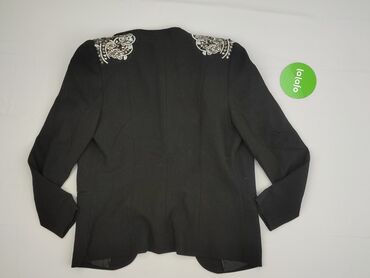 Czarna marynarka damska marki H&M, wykonana z mieszanki poliestru, wiskozy i elastanu, co zapewnia komfort noszenia i dopasowanie. Zapinana na pojedynczy guzik z przodu, z klasycznym kołnierzem i k...