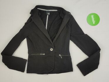 Żakiet damski Pimkie – klasyczna czerń - Fason: taliowany, jednorzędowy, zapinany na jeden guzik - Kołnierz: klasyczne klapy - Rękawy: długie, mankiety z dwoma guzikami - Kieszenie: dwie naszywane...