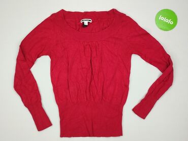 Czerwony sweter damski z dekoltem w serek, marki MNG BASICS. Sweter posiada długie rękawy zakończone ściągaczami. Dekolt, mankiety i dół swetra są ozdobione dwoma pasami w kolorze białym i granatow...Stan: