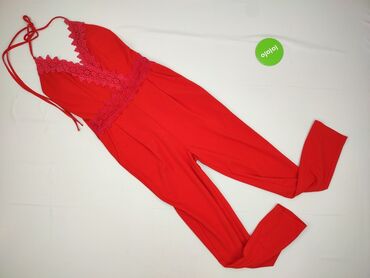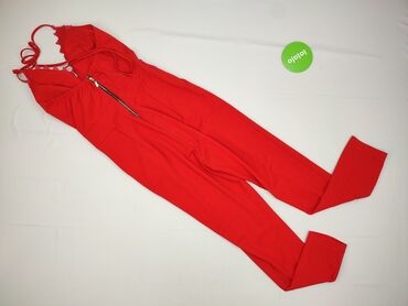 Czerwony kombinezon damski typu jumpsuit - Fason: długie nogawki zakończone ściągaczami, góra bez ramiączek z tunelikiem i troczkiem do regulacji obwodu. - Talia: elastyczna, z szerokim pasem podk...