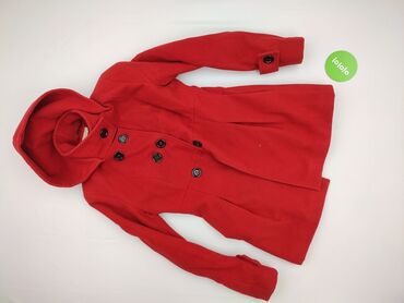 Czerwony płaszcz damski z lekkiego materiału, o kroju bombki. - Krój: trapezowy/bombka, długość do połowy uda - Zapięcie: podwójny rząd guzików (dwurzędowy), duże plastikowe guziki w kolorze płasz...