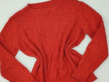 Czerwony sweter damski P-M, rozmiar S/M. - Fason: luźny, nietoperzowe rękawy - Ozdoby: drobne dżety na ramionach i wzdłuż rękawów, ażurowe wstawki/przeplatany detal przy ramionach - Dekolt: okrągł...