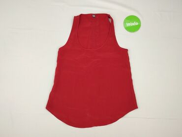Czerwona koszulka damska bez rękawów - Krój: dopasowany, lekko taliowany - Dekolt: okrągły z ozdobnym sznurowaniem z przodu - Rękaw: krótki/cap sleeve - Materiał: 100% poliester (metka) - Rozmiar ...Stan: