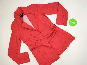 Płaszcz damski trench Esmara - Kolor: intensywna czerwień - Krój: klasyczny trencz, dwurzędowy - Zapięcie: guziki z przodu, dodatkowo pasek w talii z prostokątną klamrą - Regulacja: paski z klamra...