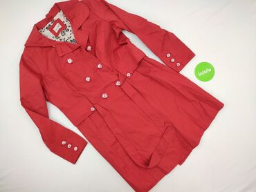 Płaszcz damski trench Esmara - Kolor: intensywna czerwień - Krój: klasyczny trencz, dwurzędowy - Zapięcie: guziki z przodu, dodatkowo pasek w talii z prostokątną klamrą - Regulacja: paski z klamra...