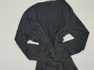 Damski płaszcz kardigan w kolorze czarnym - Fason: bez zapięcia, przewiązywany paskiem w talii - Kołnierz: szeroki, opadający szalowy - Długość: do połowy uda (asymetryczne poły z przodu) - Rękawy...