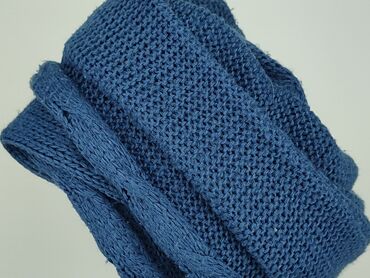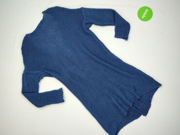 Długi kardigan damski, dzianinowy, bez zapięcia. - Kolor bazowy: denimowy niebieski - Wzór: aplikacje/łatki w kontrastowych kolorach (biały, czarny, szary) z miękkiej, pętelkowej przędzy - Fason: p...Stan: