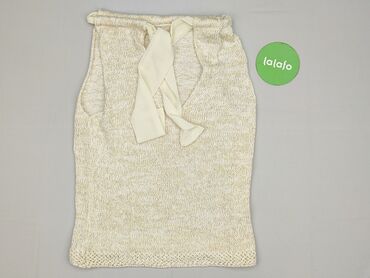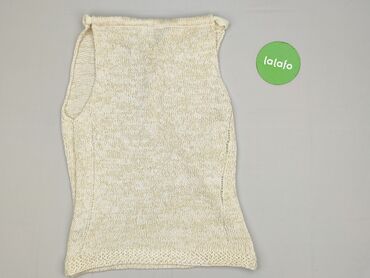 Beżowy top damski z dekoltem w serek - Krój: luźny, lekko skrócony, z szerokimi otworami na ręce (bez rękawów) - Dekolt: głęboki V-neck z podwójnym obszyciem - Materiał: cienka, miękka dzianina ba...Stan: