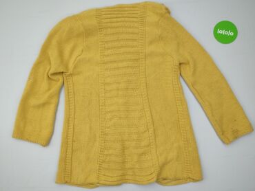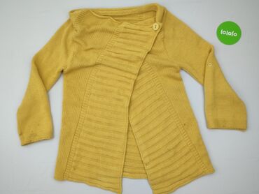 Ażurowy kardigan damski - Kolor: pastelowy, kremowo-żółty - Fason: rozpinany na przodzie na guziki (4 okrągłe guziki) - Dekolt: w kształcie litery V - Długość rękawa: długi - Dzianina: lekka, mięk...