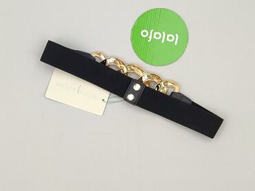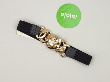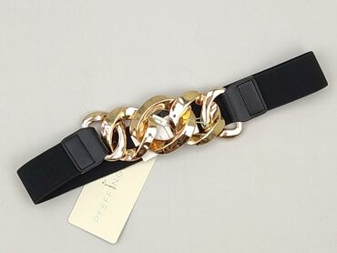 Pasek damski PFEFFINGER - Kolor: czarny z efektowną, dużą ozdobą w kolorze złota (trzy masywne, polerowane ogniwa). - Materiał paska: elastyczna taśma 70% poliester, 30% elastan. - Zapięcie: napy ...