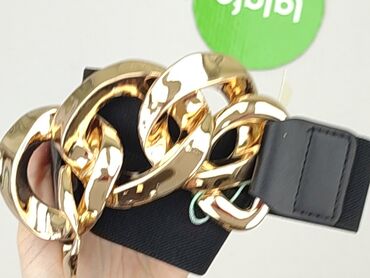 Szeroki pas elastyczny z ozdobą łańcuchową - Kolor: czarny pas, złota dekoracja z dużych ogniw - Materiał pasa: 70% poliester, 30% elastan – mocno elastyczny, dopasowuje się do sylwetki - Zapięcie...