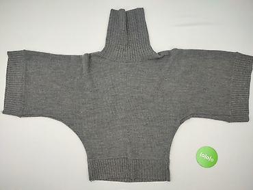 Sweter z golfem – szary, prążkowany - Fason: luźny, z szerokim, miękkim golfem; rękawy 3/4 typu raglan. - Splot: wyraźny, pionowy prążek na całej powierzchni; elastyczne ściągacze u dołu oraz przy...Stan:
