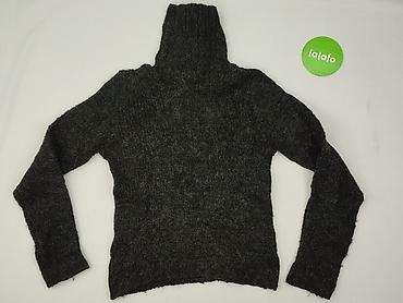 Sweter damski z golfem, dzianinowy, kolor jasnoszary/melange. - Fason: dłuższy sweter z wysokim, szerokim golfem; rękawy długie. - Splot: wyraźna, gruba faktura o strukturalnym, „koszykowym” wzorz...