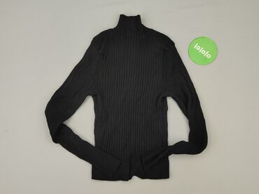 Czarny golf damski z długim rękawem - Klasyczny, gładki model z wysoką, prążkowaną stójką - Materiał cienki, elastyczny i miękki w dotyku (dzianina swetrowa) - Rękawy i dół zakończone szerokim, el...
