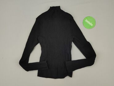 Czarny golf prążkowany – rozmiar S - Fason: dopasowany sweter z wysokim, miękkim golfem - Dzianina: grubsza, elastyczna, wyraźny pionowy prążek na całej powierzchni - Rękawy: długie - Dół i mankie...