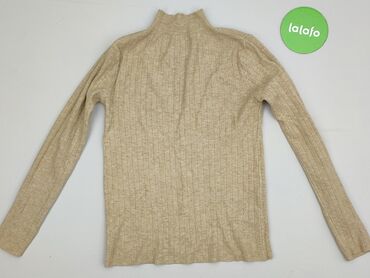 Sweter damski MLE, rozmiar S, wyprodukowany w Polsce. - Fason: oversize z wysokim, miękkim golfem - Kolor: karmelowy/beżowy - Dzianina o melanżowej fakturze, elastyczna i miła w dotyku - Skład: 30...